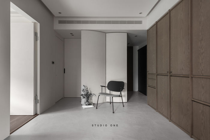 弧形量體的切入,劃下空間中的隱性界線與轉折,形體與機能的兼容並存